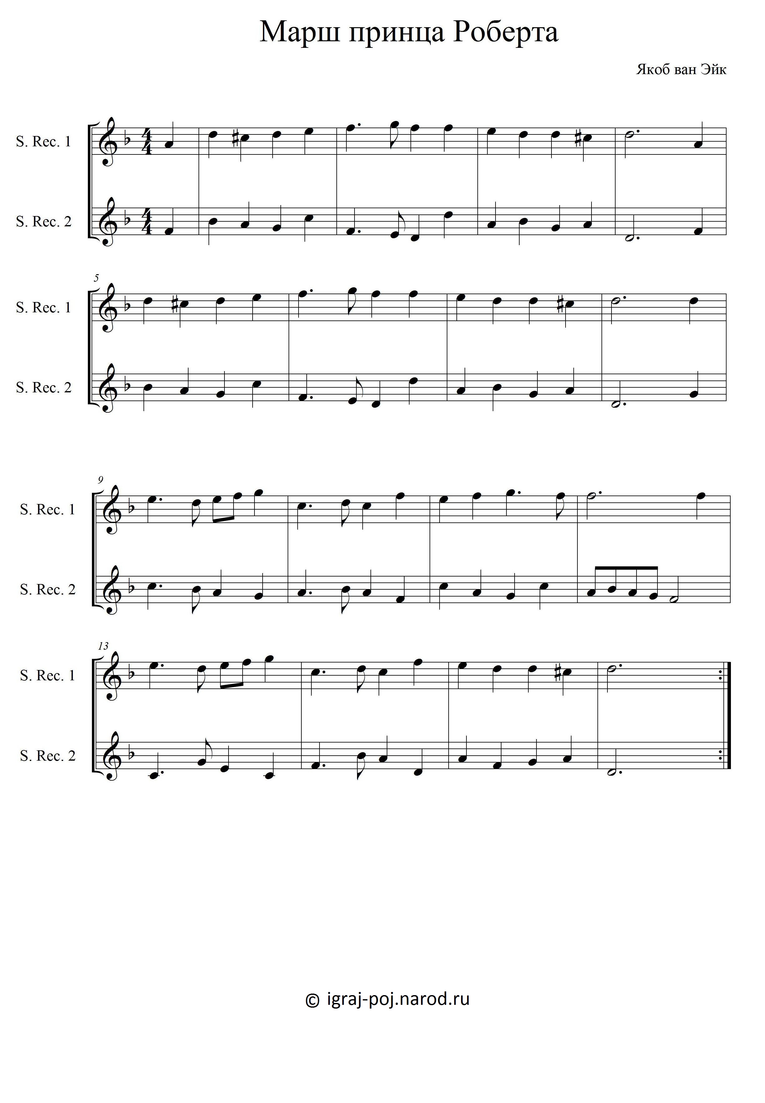 Новые нотыЯ. ван Эйк, Марш принца Роберта. Дуэт