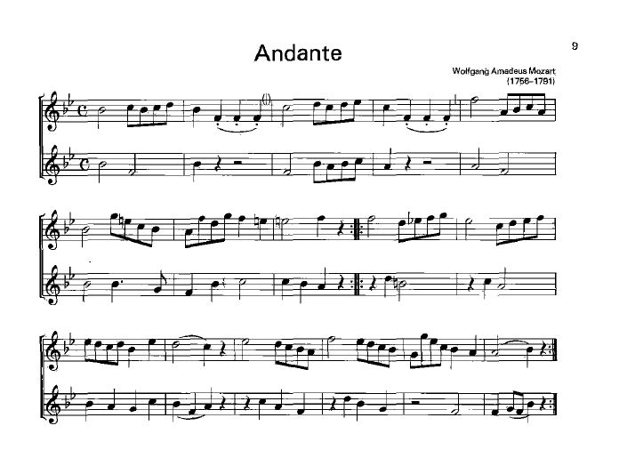 Новые нотыВ.А. Моцарт, Andante. Дуэт